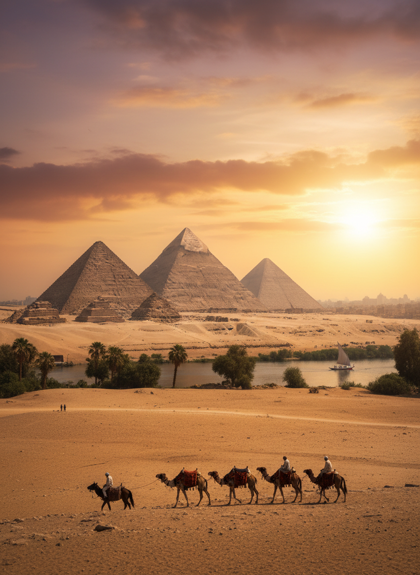 • Odległość drogowa: Z Hurghady do piramid w Gizie jest około 450–520 km w zależności od wybranej trasy przez pustynię.